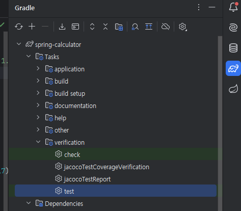 Gradle 창의 verification jacocoTestReport 더블클릭