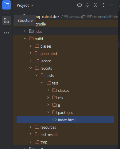 build- report-jacoco 폴더 안에 index.html 파일이 생성